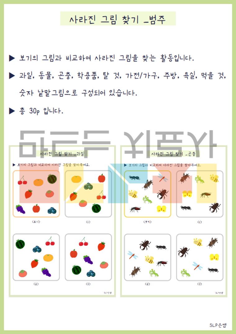 SLP은쌤의 시각적 주의력/변별력 종합세트2 입니다.