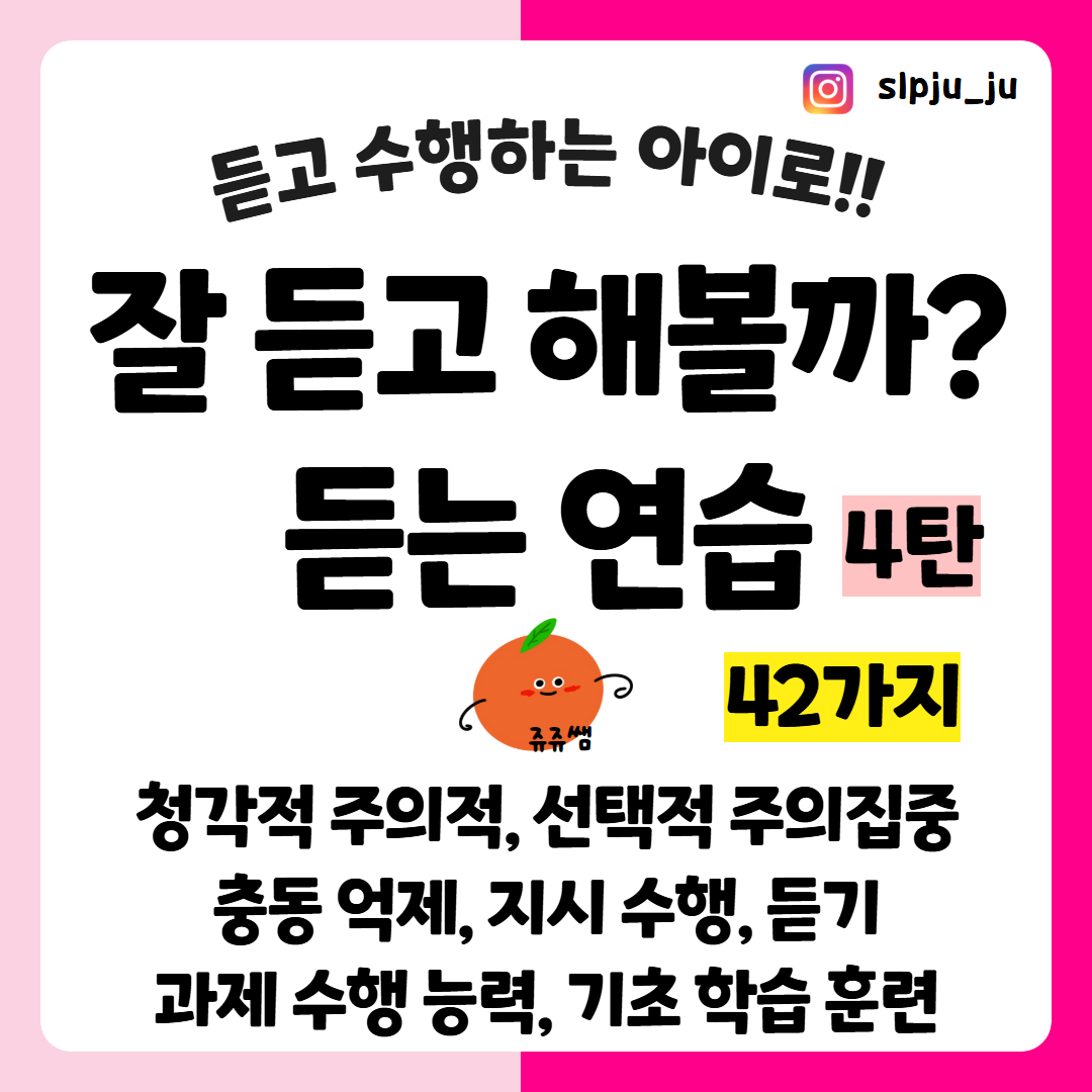 안녕하세요 쥬쥬쌤입니다. 아동이 지시를 끝까지 듣고 기억해 조건에 맞게 수행하도록 하여 청각적 주의집중과 작업기억을 동시에 강화하는 활동입니다. 어휘 의미 이해와 범주화 능력을 함께 훈련해 학습의 기초가 되는 인지·언어 기반을 탄탄하게 다집니다