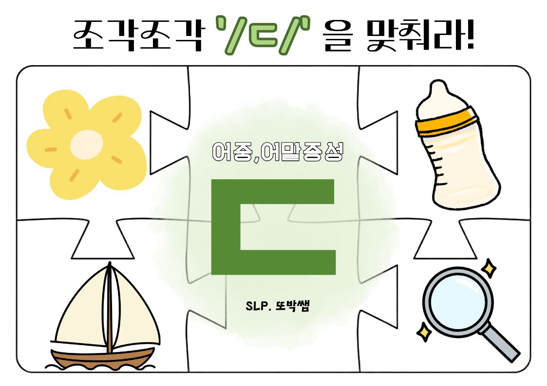 안녕하세요 또박쌤입니다! 어중종성과 어말조성 ㄷ 의 조음이 어려운 대상자들을 위해 제작하였습니다. 퍼즐과 숨은 그림 찾기를 통해 즐겁게 연습해보세요!
