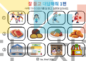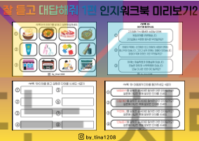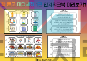 <잘 듣고 대답해줘 1편> 인지워크북은 청지각 주의력, 언어이해 인지능력 향상을 목표로 구성하였으며, 총 40Page 입니다.