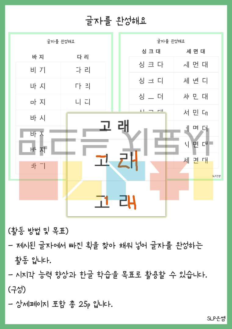 SLP은쌤의 글자를 완성해요 입니다.
